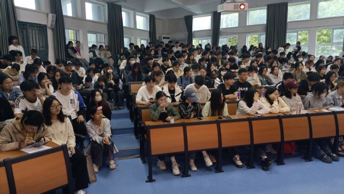 讲座中,袁帅特别强调了职业生涯规划的重要性,他指出,职业生涯的规划应当在大学期间尽早开始。通过树立明确的职业目标,针对性的开展专业学习和实习实践活动,会让大学生活更加充实,职场道路事半功倍。他鼓励同学们在学业专注的同时,针对不同的职业路径如公务员考试、事业单位招聘、研究生考试或直接就业、创业等进行早期规划和有针对性的准备。接着,他结合个人经历及其他校友案例,为同学们提供了职业规划的具体实施方法和策略。他鼓励同学们积极面对挑战,尽早参与实习以积累工作经验,并强调了脚踏实地、志存高远的重要性,以实现个人职业目标并取得成功。他的真诚分享和鼓励获得了在场学生的热烈反响和广泛认可。