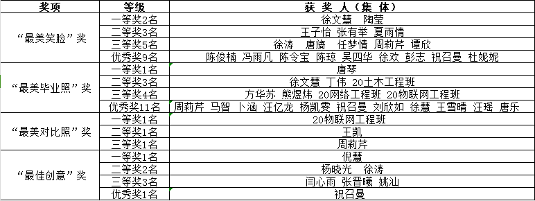 嘹亮悠长的蝉鸣,仿佛奏响那青春之歌,蚌院的校园里,有你奋斗的汗水、执着的追求、也有你肆意的笑声、永恒的回忆。为更好记载2024届毕业生在校学习生活的青春记忆,同时反映世界杯官网学子感恩母校、珍惜友谊、感谢师恩的真挚情怀,我院开展了“最美毕业照”征集活动,经宣传动员、作品征集、组织评审等环节,最终评选出“最美笑脸奖”一等奖2名,二等奖3名,三等奖5名,优秀奖若干;“最美毕业照奖”一等奖1名,二等奖3名,三等奖4名,优秀奖若干;“最美对比照奖”一等奖1名,二等奖1名,三等奖1名 ;“最佳创意奖”一等奖1名,二等奖2名,三等奖2名,优秀奖若干。现予以公布: