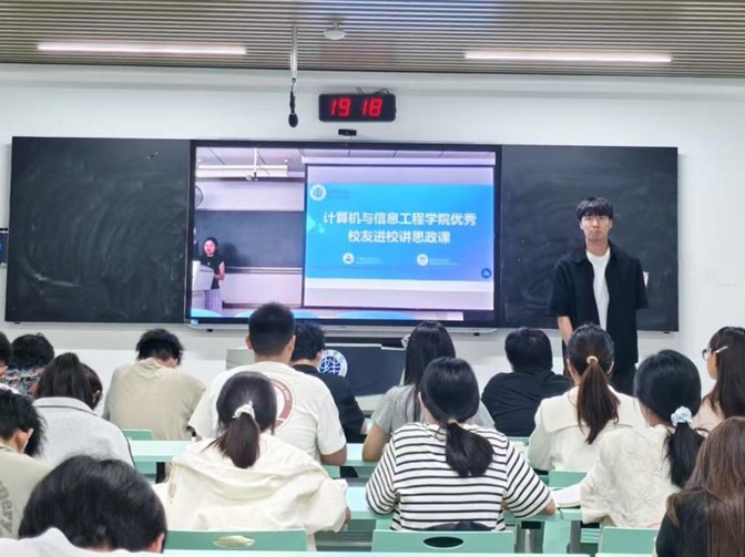 为充分发挥优秀校友的榜样引领作用,引导青年大学生树立正确的价值观和成才观,5月22日至25日,计算机与信息工程学院组织2023级、2024级学生开展多场“优秀校友讲思政课”活动。本次活动邀请2017级软件工程专业优秀校友、南昌大学环境与工程专业博士研究生朱巧云担任主讲嘉宾。