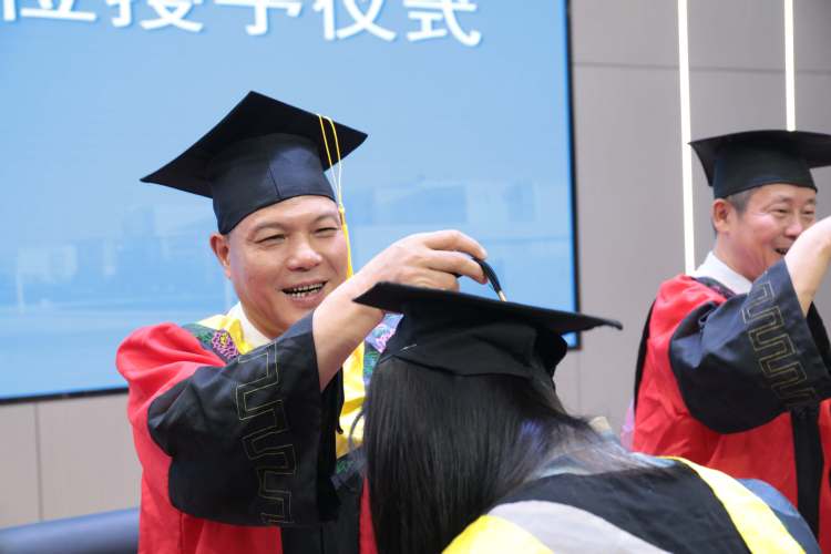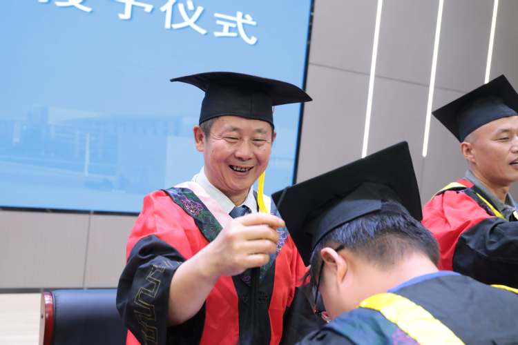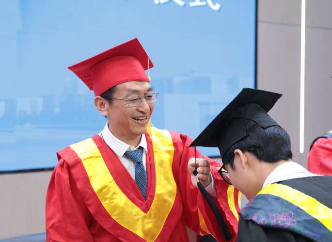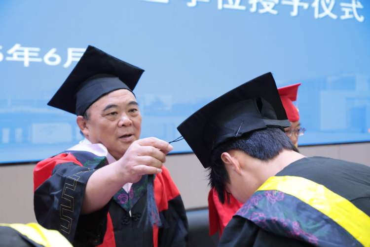 校领导为毕业生代表拨穗正冠