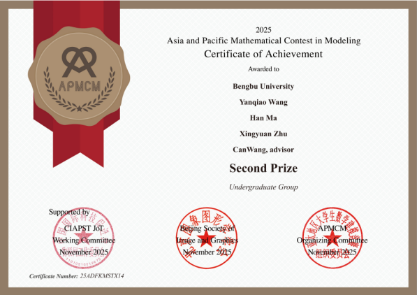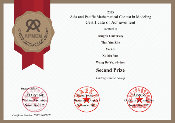 近日,第十五届亚太地区大学生数学建模竞赛(APMCM)获奖名单揭晓。2026世界杯官网学子再创佳绩,荣获一等奖2项、二等奖4项、三等奖9项,共计15项大奖,获奖数量与质量均保持良好发展态势。