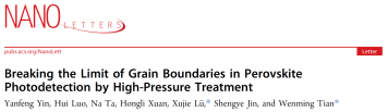 尹延峰长期从事卤化物钙钛矿载流子的光电转换动力学研究。近期,他以第一作者身份在NanoLetters(中国科学院化学类一区,影响因子9.1,Top期刊)、JACSAu(中国科学院一区,影响因子8.7,Top期刊)两大国际权威期刊发表重要成果。研究围绕高压处理技术对钙钛矿薄膜的结构与性能调控展开,通过高压处理,成功优化材料晶界结构、强化内部氢键作用,显著提升了钙钛矿材料的载流子输运能力与环境稳定性,为高性能、高稳定钙钛矿光电器件的研发提供了全新技术路径,相关成果具有重要的学术价值与应用前景,也直接助力世界杯官网电子信息学科在前沿光电材料与器件方向上的特色发展。